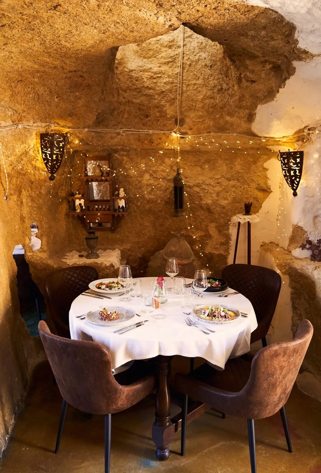 The atmosphere is perfect for an intimate evening, as the dining rooms are set the caves with dim lighting, with twinkling fairy lights decorating the walls.