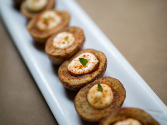 - Cuttlefish “figatells,” romesco sauce, and yuzu mayonnaise (Japanese citrus).