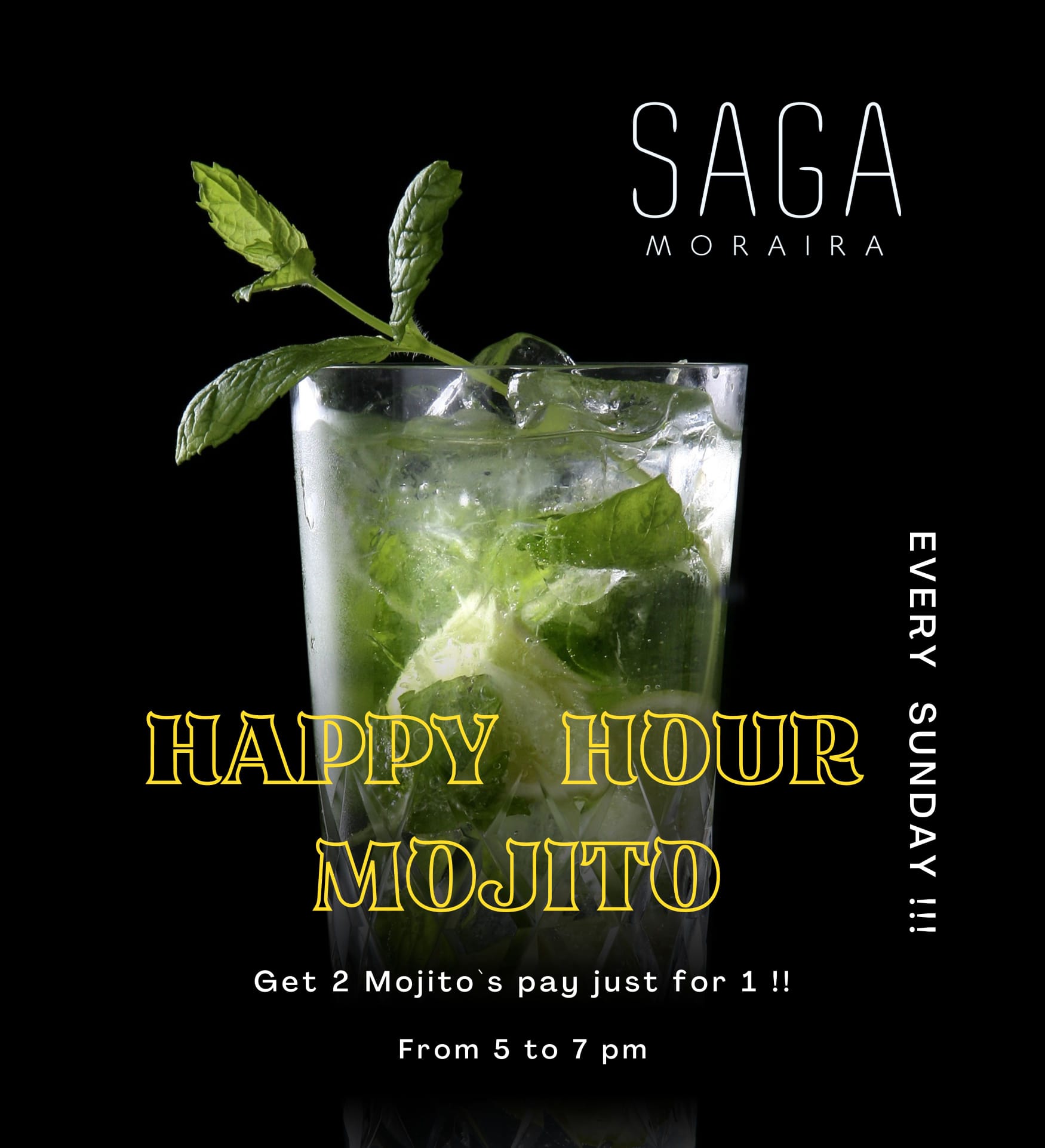 During the past few months, Saga has been hosting fantastic music nights and special afternoons for its customers. So now, every Sunday, you can take advantage of the HAPPY MOJITO moment they’ve added to their repertoire, where you pay for 1 and get 2. This summer, enjoy the breeze of the Mediterranean Sea and relax on their outdoor terrace, while delighting in one of their excellent cocktails.