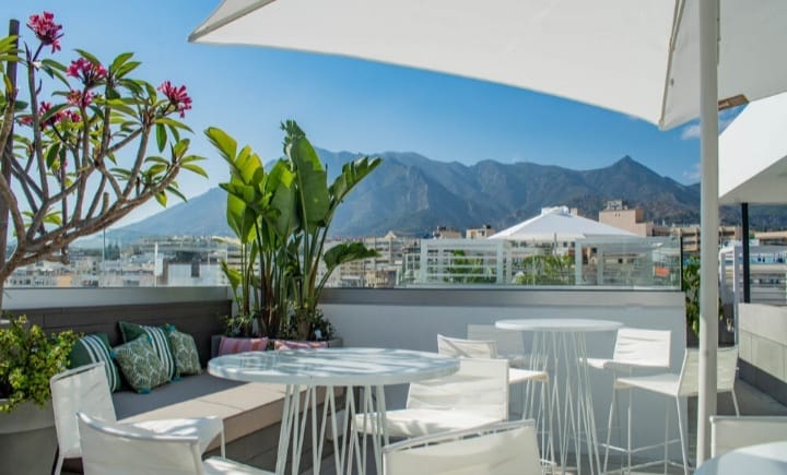 Hotel Lima has the privilege of being located in the historic center of Marbella, and with its luxurious rooftop, it is the protagonist of the most beautiful sunset spots in the area.